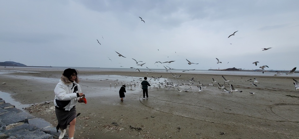 고창 구시포해수욕장 갈매기 새우깡 주기