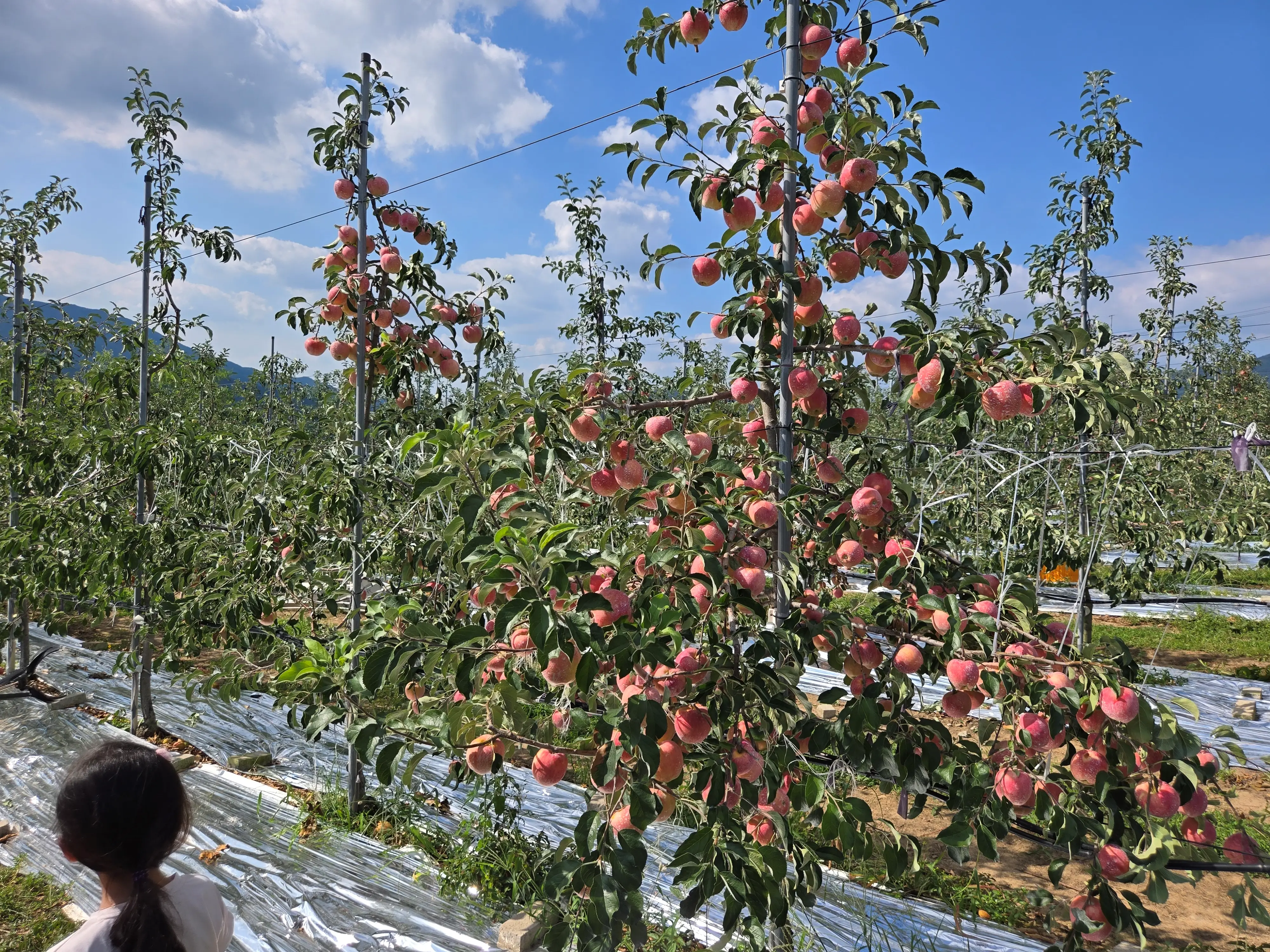 이제 드디어 사과 수확 체험 장소에 도착했어요.