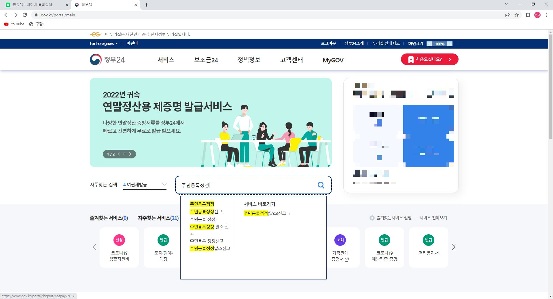 1. 인터넷에서 민원24를 검색해서 들어갑니다