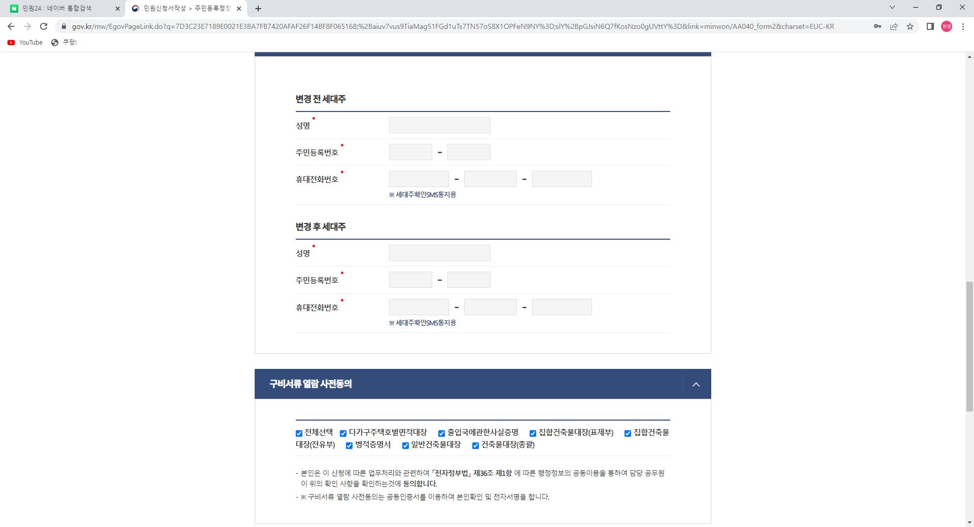 중요한점은 현 세대주가 승인까지 해야 서류접수가