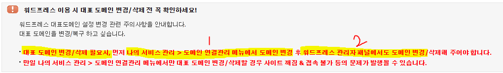 카페24 호스팅관리에서 대표 도메인으로 변경을 한후